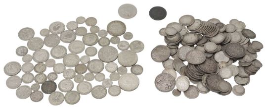 pre 1920 to include crowns: 4 x1899, 4 x 1890, 1891, 1895 and 1899, George III half crown 1817, quantity of half crowns, florins, shillings, sixpences and threepences, a small quantity of post 1920 and pre 1947 silver coins to include crowns: 1932, 2 x 1935 and 1937, half crowns, shillings and sixpences, etc. (qty)
