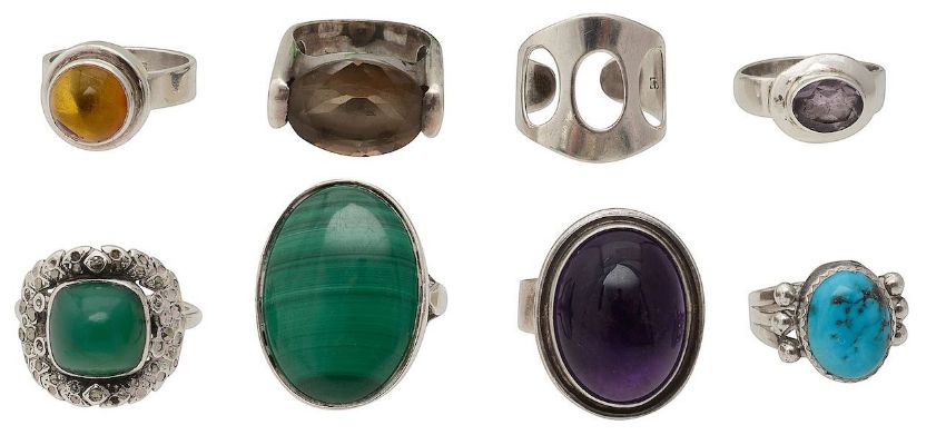 A collection of gem-set rings