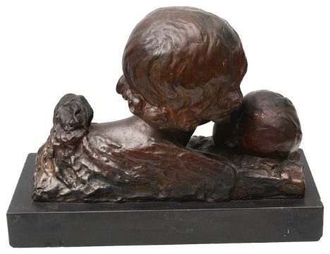 Condition:Some small areas of wear to patination with light scratches and wear, principally to child's right cheek, only visible on close inspection Small Chips to corners and edges of plinth base