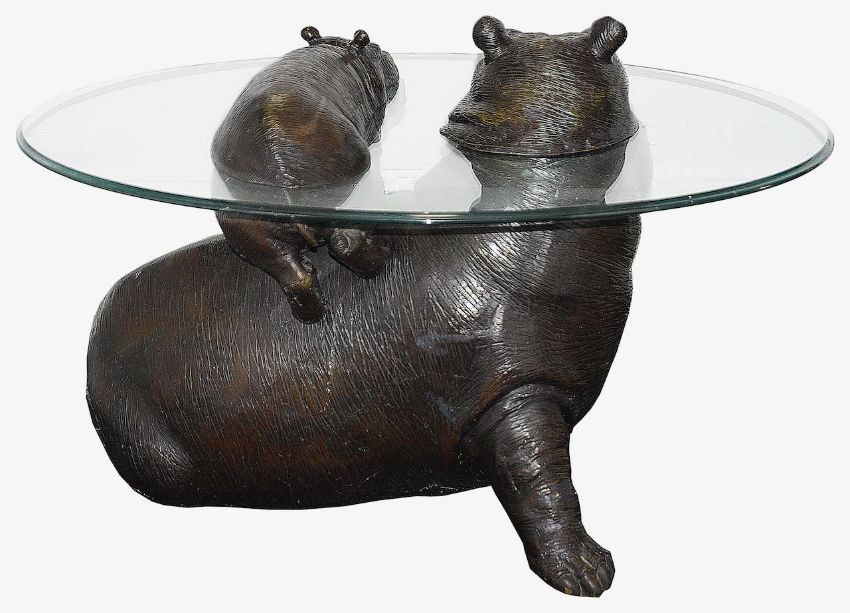 Mark Stoddart Herbert (British b. 1960)A limited edition patinated bronze and glass 'Mother and Baby Hippo coffee table', number 28 of 99, signed M Stoddart, stamped 28/99., together with original certificate from Sculpt-Art Creationswidth 137cm x depth 93cm approxCondition:Glass is 12mm thick, a few minor surface scratches and wear commensurate with age but no major damage. Due to the size and weight of this item, it is off site and not available to view. Collection by arrangement only on this lotPurchased directly from Mark StoddartLARGE ITEMS (W lots) are available for collection the day after the sale, from 17th October.