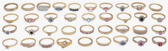 A large group of rings 18ct gold, ruby and diamond set ring, central oval mix-cut ruby, set between two round brilliant cut diamonds, mounted in 18ct gold, stamped with hallmarks to shank; three gem-set rings, stamped to shank "10K"; 9ct rose gold and colourless gem solitaire ring, central round mix-cut stone, claw set to plain shank, stamped with hallmarks; diamond set cluster ring, stamped "9K" to shank together with a large collection of 9ct gold gem-set rings, stamped with hallmarks (qty) ring sizes Q, R, P/Q, O, R/S, total approx. weight of 18ct gold 2.9g, total approx. weight 82g, total approx. weight "10K" stamped rings 7.7g, total approx. weight of "9K" stamped ring 3.3gCondition:PLEASE NOTE: We cannot confirm the nature of the stones used; whether they are natural, synthetic or treated. All in good overall condition.