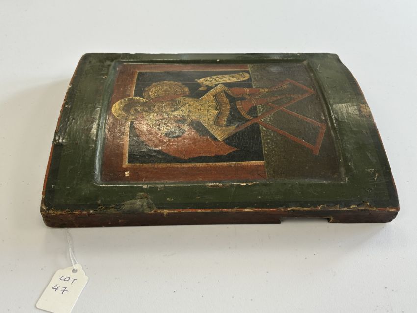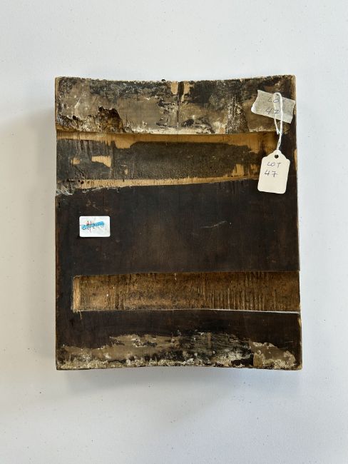 Condition:Panel bowed. Chips to panel edges, large loss left hand upper border. Surface craquelure. Both splints absent
