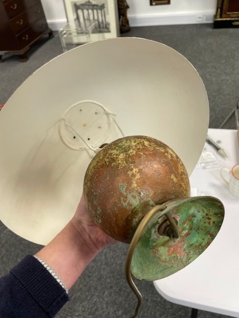 Condition:indentation on lampshade with handwritten label Val Gould (lampshade on the right hand side)