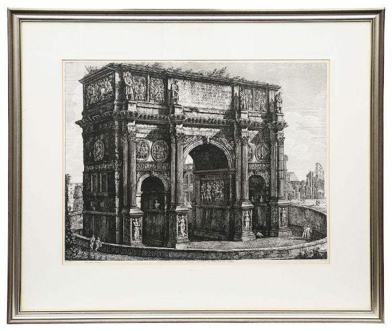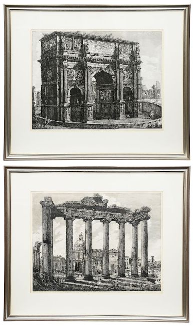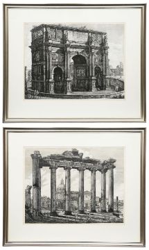 'Veduta dell' Interno del Tempio della Concordia, nel Foro Romano' First state c.1820 and 'Veduta dell' Arco Costantino' c.1850, etchings on wove paper, mounted, framed (2)