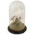 perched on an branch with ferns and grasses on rockwork, under dome on an ebonised plinth base