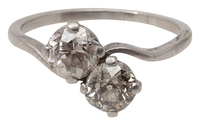 each old brilliant-cut diamond obliquely-set to the tapering shank