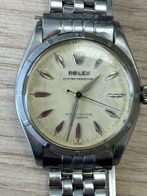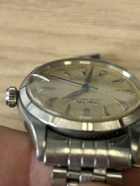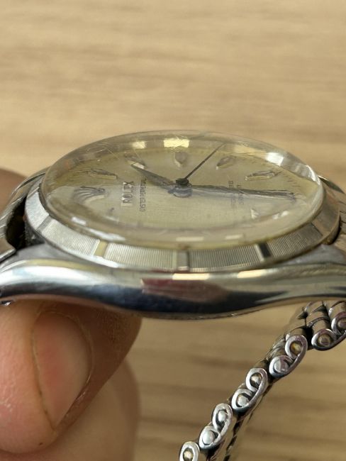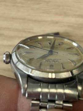 Condition:Some discoloration to dial. Short Crack to crystal  between 3 and 4 o'clock  length approx. 5mm long Surface scratches commensurate with age and wear. Will run but movement not tested or guaranteed. Dial a little discoloured.