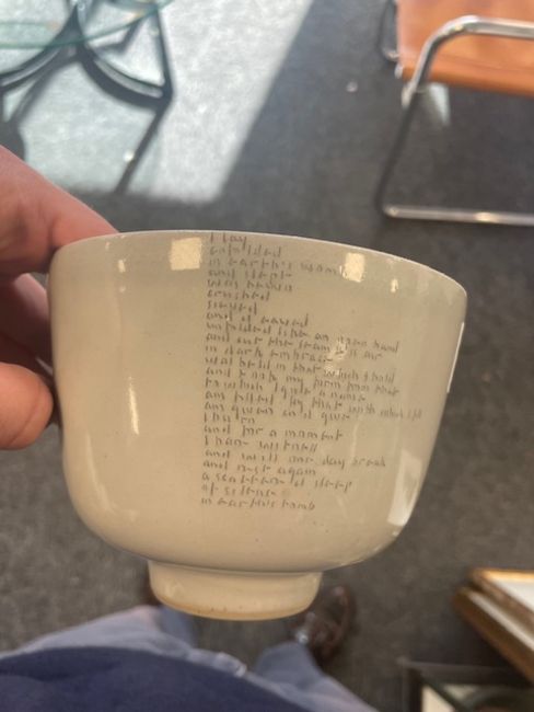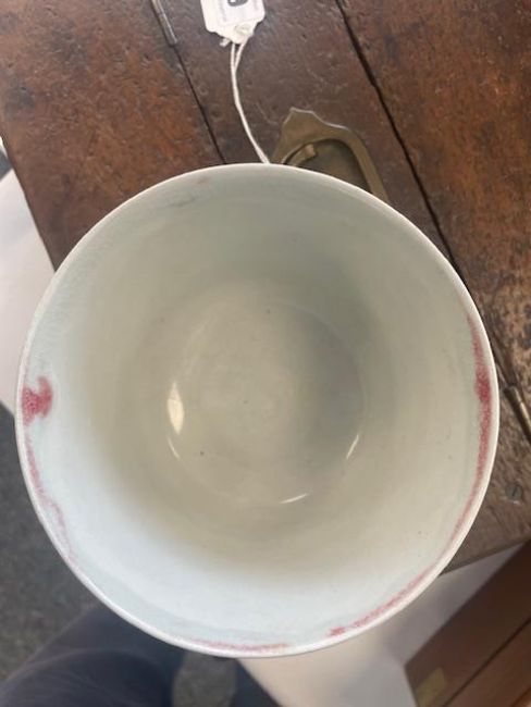 embossed with a poem under grey chun glaze with splashes of copper red, RS seal mark