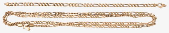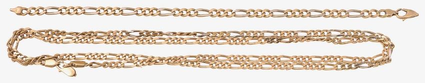 flat gage 'figaro' chain necklace with 750 stamped to clasp; flat gage 'figaro' bracelet chain with 750 stamped to clasp (2)