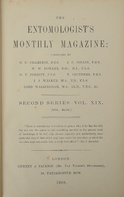 Entomologists Monthly Magazine Second Series Vols XIII-XX (38-45)