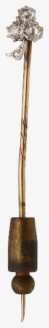 A diamond trefoil stick pinset with three old brilliant-cut diamonds with a diamond-set stemlength 1.0cm, width 0.7cm, 1.6gCondition:Overall condition: good/very good Diamond with largish culets, bright with fair colour and clarity