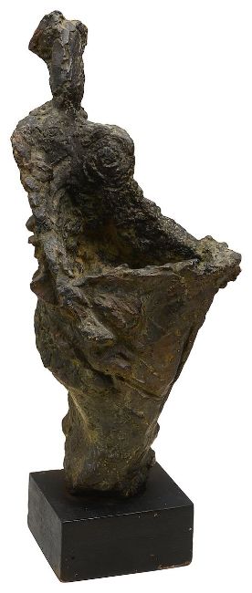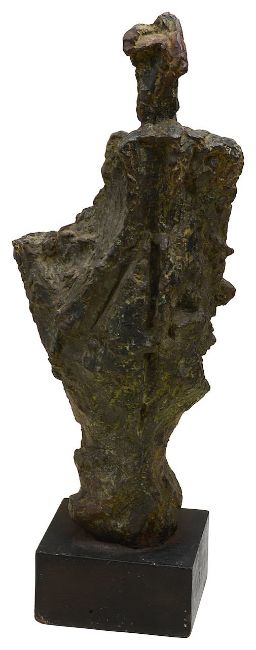 'Abstract standing figure' patinated bronze, unsigned, ebonised plinth base