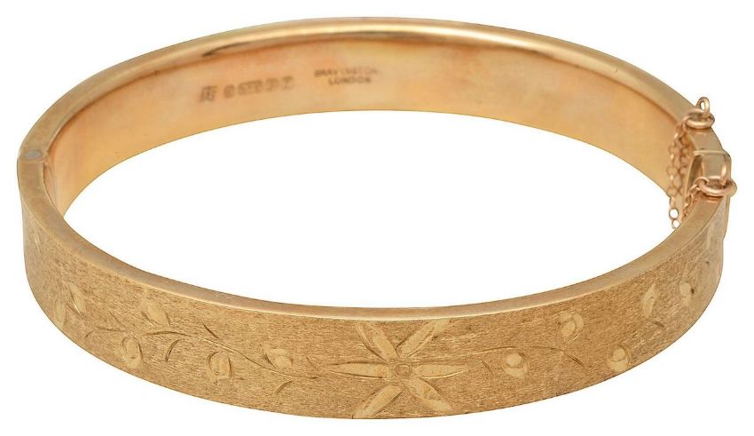 chased with scrolling floral design, stamped with hallmarks and safety chain