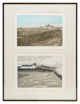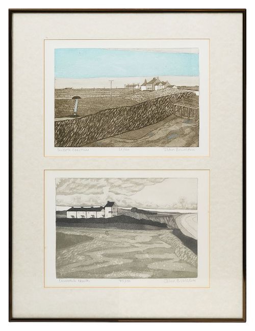 'Suffolk Coastline' 32/100 signed and 'Dunwich Heath' 75/150, signed, etchings with aquatint, mounted together, framed