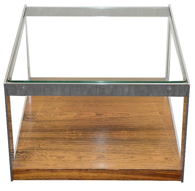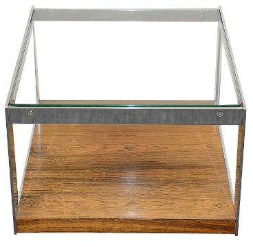 with glass top, chromed frame and rosewood undertier, on casters