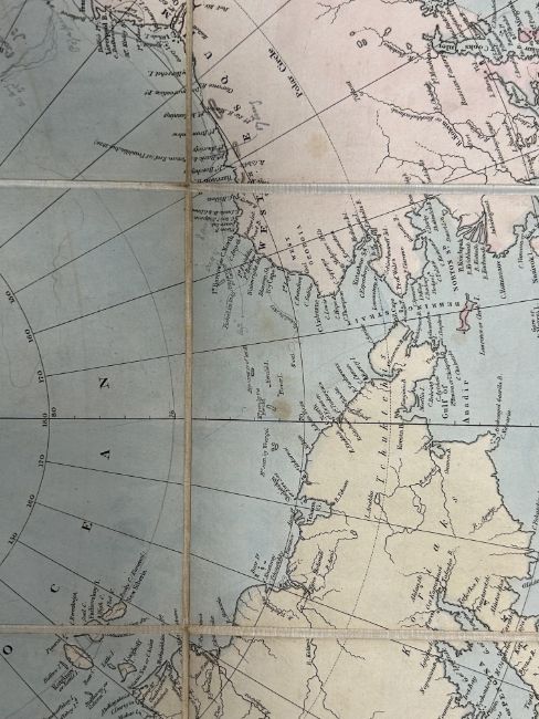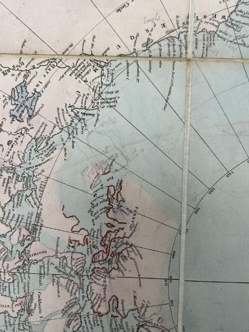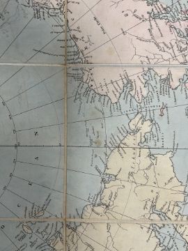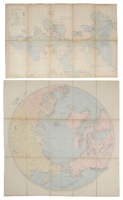 first Map of the Countries Round the North Pole, engraved with hand colouring in fifteen sections backed on linen, London, 1850, second Discoveries in the Arctic Sea between Baffin Bay & Melville Island shewing the Coasts Explored on the Ice, by Captn Ommanney & The Officers of the Expeditions under the Command of Captain H.T. Austin R.N. C.B. & Captain Penny: Also by the Honble. Hudson's Bay Cos. Expedition under the Command of Rear Admiral Sir John Ross C.B. in search of Sir John Franklin, 1850-51, engraved with with hand colouring in ten sections backed on linen. London 1851 both with marbled endpapers with title labels