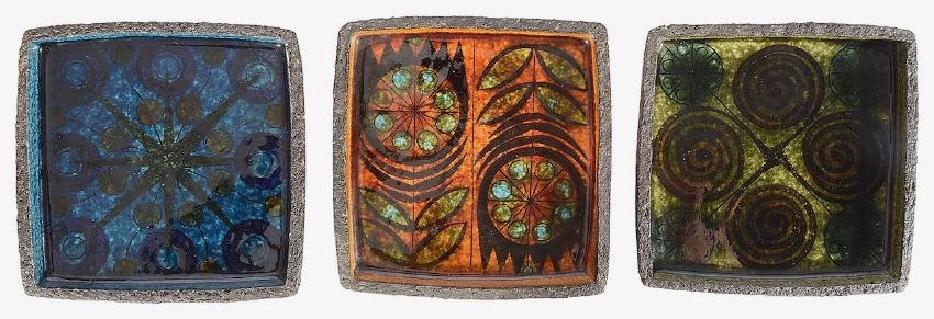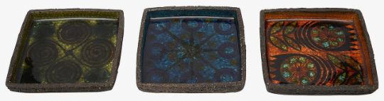all signed TT, marked Denmark and numbered 27, blue / green dish marked 118-3477 on underside, orange / brown / green / blue dish also marked 118-3477 on underside, (3)