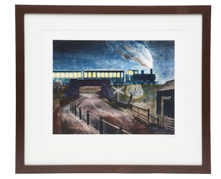 'Train Going over a bridge at Night, 1935', a limited edition giclee digital print numbered 24/500, The Mainstone Press, 2011, mounted, framed, accompanied by certificate