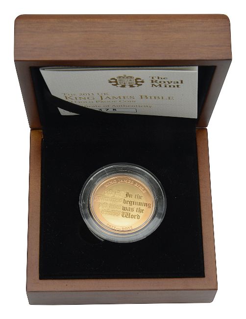 United Kingdom. Royal Mint Elizabeth II 2011 £2 gold proof coin King James Bible
