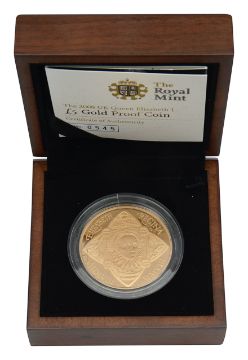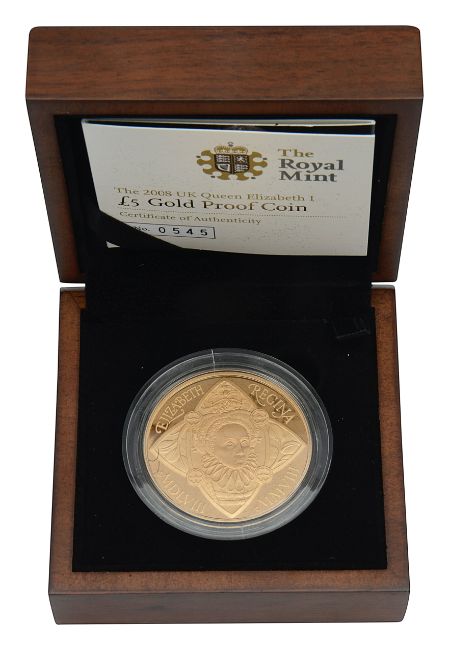 United Kingdom. Royal Mint Elizabeth II 2008 gold proof £5 coin Queen Elizabeth I