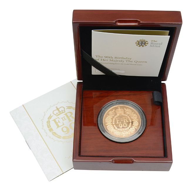 United Kingdom. Royal Mint Elizabeth II 2016 gold proof £5 coin The 90th Birthday of Her Majesty The Queen Elizabeth II