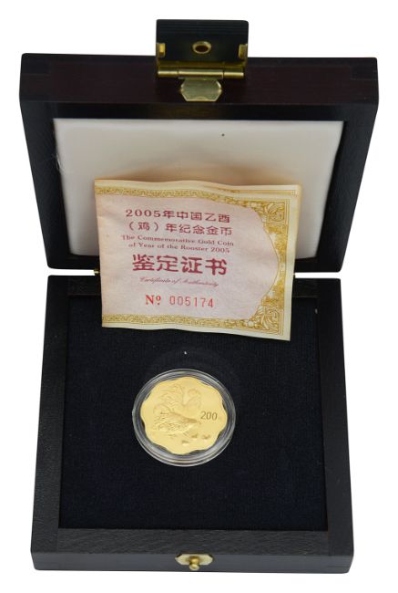 China. Peoples Bank of China 2005 gold proof 200 Yuan Year of the Rooster