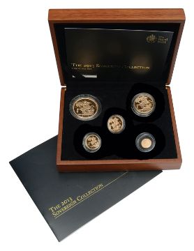 United Kingdom. Royal Mint Elizabeth II 2013 gold proof five-coin Sovereign set