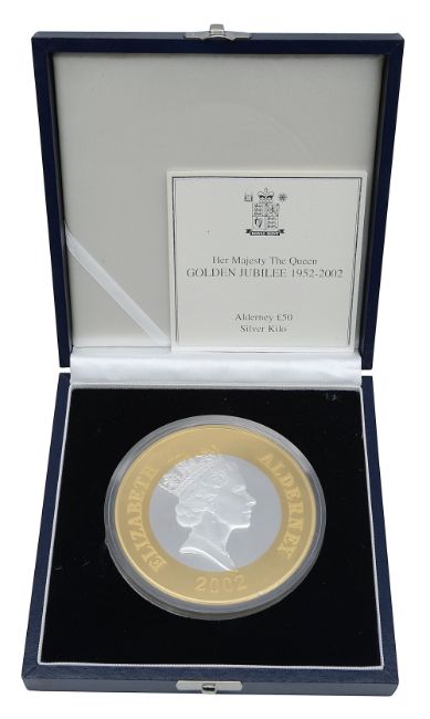 United Kingdom. Royal Mint Elizabeth II 2002 Alderney silver proof 1 Kilo £50