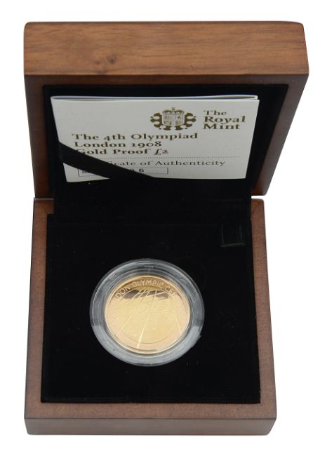 United Kingdom. Royal Mint Elizabeth II 2008 gold proof £2 coin 4th Olympiad London 1908