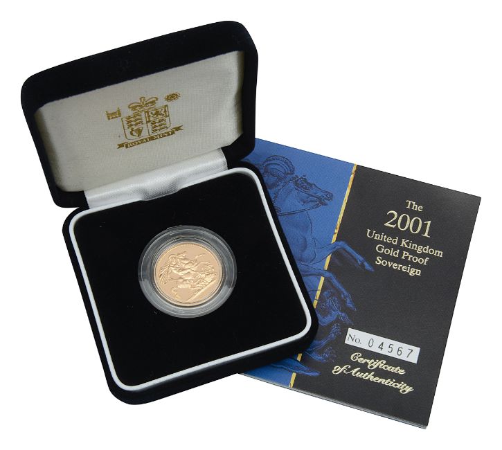 United Kingdom. Royal Mint Elizabeth II 2001 gold proof Sovereign