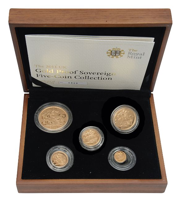 United Kingdom. Royal Mint Elizabeth II 2011 gold five-coin proof Sovereign collection