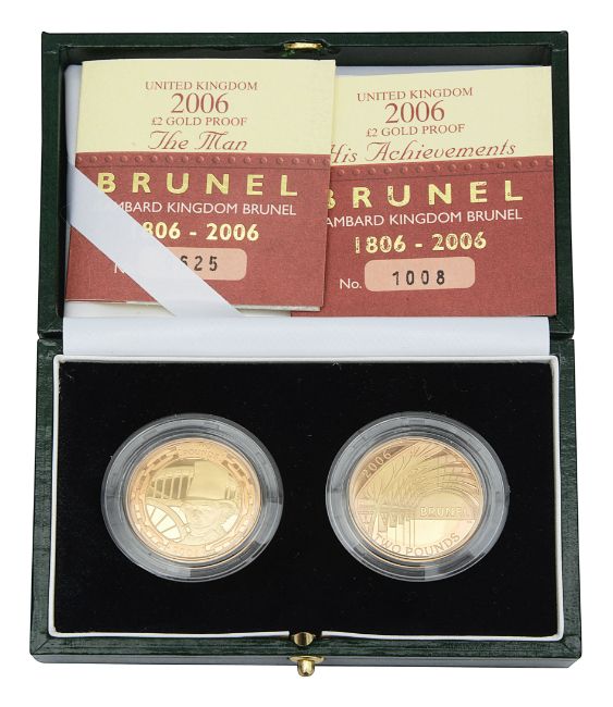 United Kingdom. Royal Mint Elizabeth II 2006 gold proof £2 coins Brunel