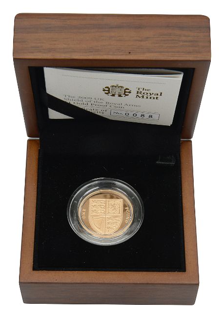 United Kingdom. Royal Mint Elizabeth II 2009 gold proof £1 coin Shield of the Royal Arms