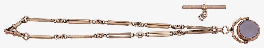 A 9ct gold watch chain with fob