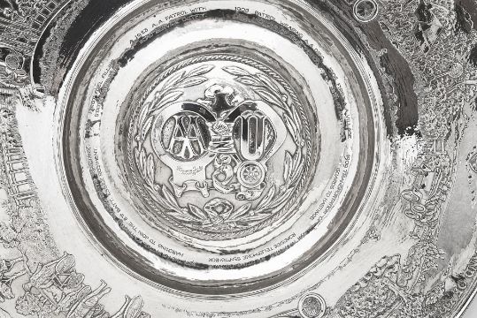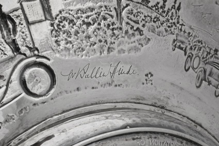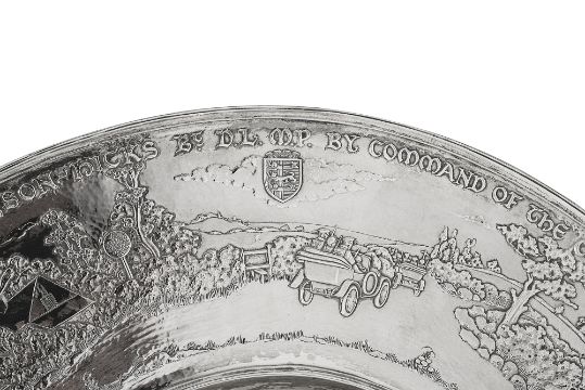 Motoring Interest. An Important George V Arts and Crafts silver presentation charger