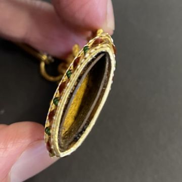 Condition:Overall good condition. There is a solder repair to the claw holding the orb. Some minor loss to white enamel jewelled decoration but very slight and only visible under magnification