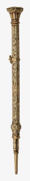the hexagonal barrel with foliate engraved decoration and citrine set capital, slide action and collar with suspension ring
