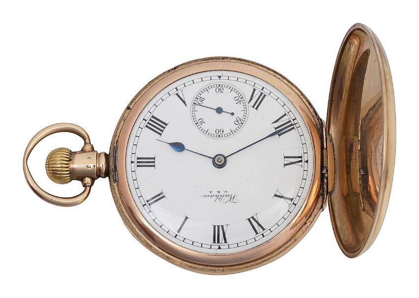 A 9ct gold Waltham full hunter keyless pocket watch