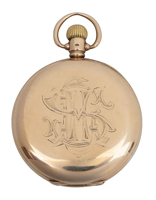 the enamel dial the Roman numerals and subsidiary dial, engraved on the case back September 23rd 1925, with engraved intertwined initials, case back stamped 375