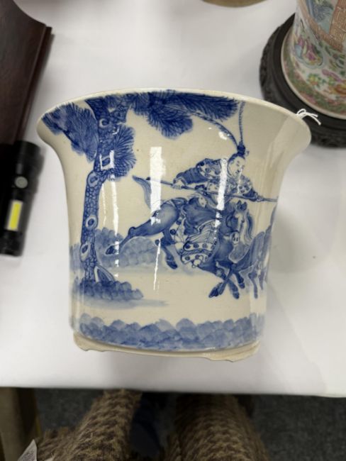 A Japanese Meiji period blue and white porcelain planter