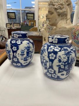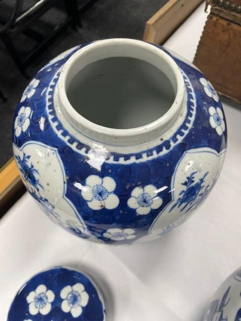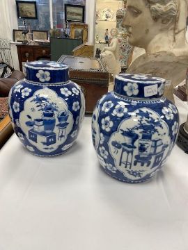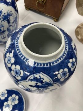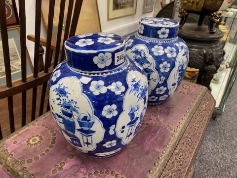 A pair of 19th century Chinese blue and white porcelain ginger jars and covers