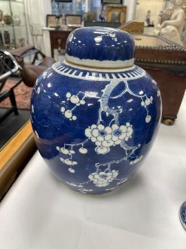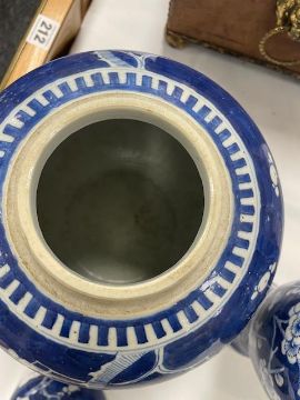 A Chinese blue and and white porcelain ginger jar and cover and two vases