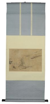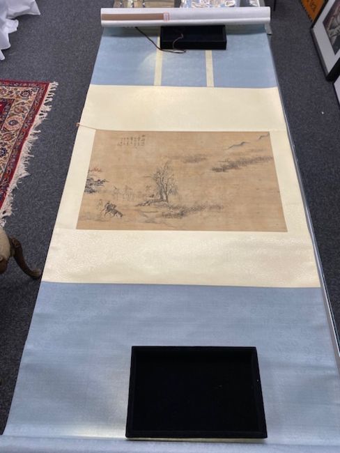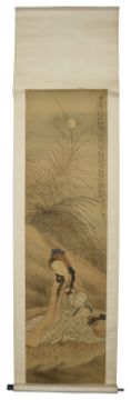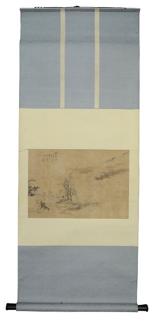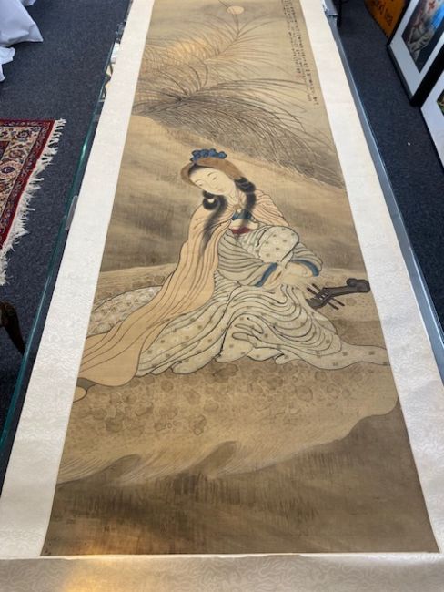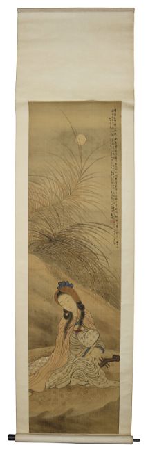first Study of a female musician, ink and watercolour on silk, calligraphy, red seal mark, second a landscape (2)