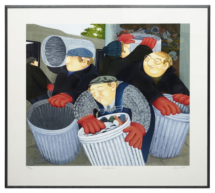 Beryl Cook (British, 1926-2008) 'Dustbinmen'