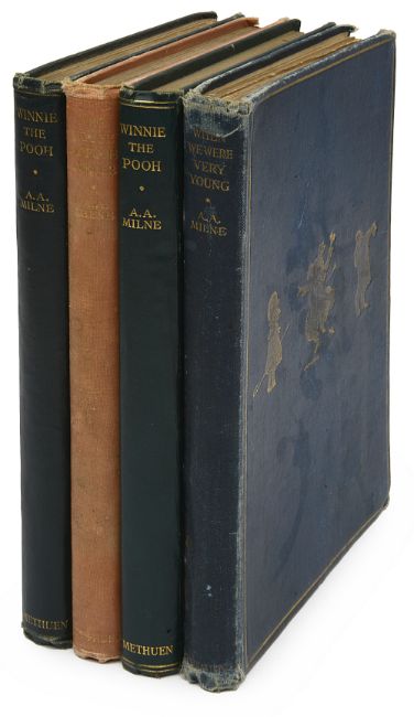 first 1926 first edition, London, Metheun, illustrated by Ernest H shepherd 12mo gilt dec. green cloth together with The House at Pooh Corner, 1928 first edition, London, Metheun, 12mo, gilt dec. pink cloth; Winnie-The-Pooh, 127 Third edition