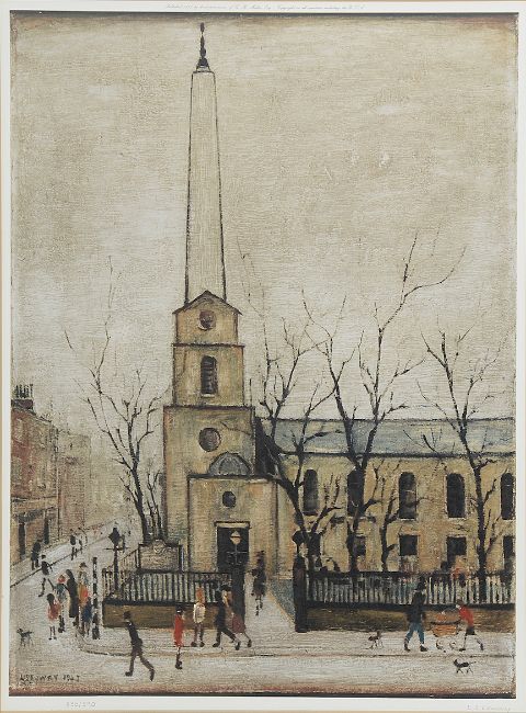 L. S. Lowry RBA RA (British, 1887-1976) 'St Luke's Church, Old Street, 1945'