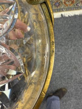 Condition: Overall Good condition, one smaller posy vase with a fleabite to rim. The base has a chip to underside which is concealed by mount. Some rubbing to base mount. Possibly one section of a much larger table centrepiece