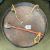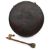of circular form with etched foliate, landscape and dragon decoration, with rope hanger; together with beater (2)