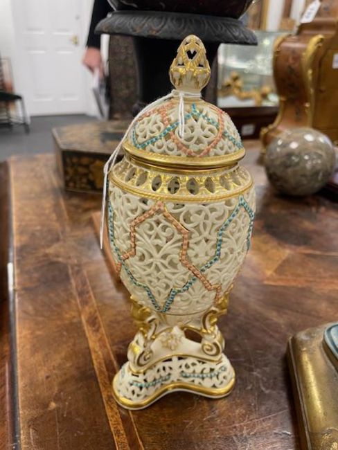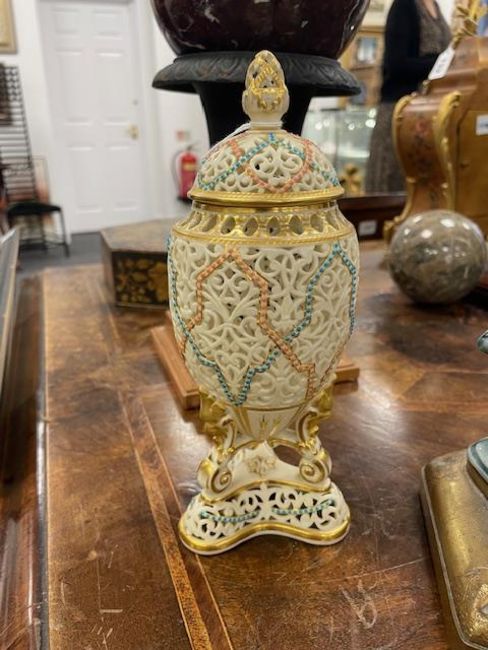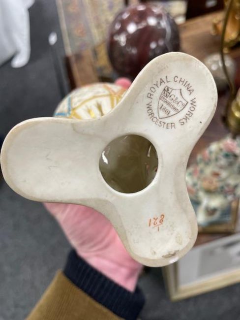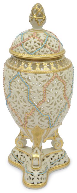 A Grainger & Co. Royal China Works Worcester blush ground reticulated vase and cover