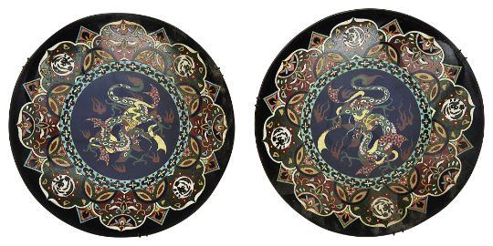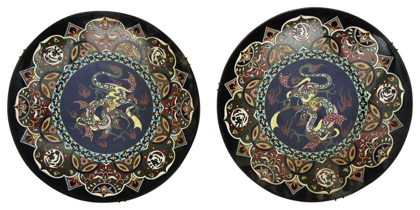 A pair of Japanese Meiji period cloisonne enamel dishes